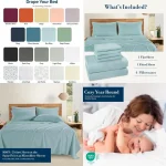 What’s included in our 6-piece Queen Size Sheets Set: 1 Queen Size Flat Sheet (90×104), 1 Queen Size Fitted Sheet (60×80 + 15 Fully Elasticized Deep Pockets), and 4 Queen Size Pillowcases (20×30). We offer a diverse collection with over 20 colors and 7 sizes to choose from, ensuring the perfect fit for your home.